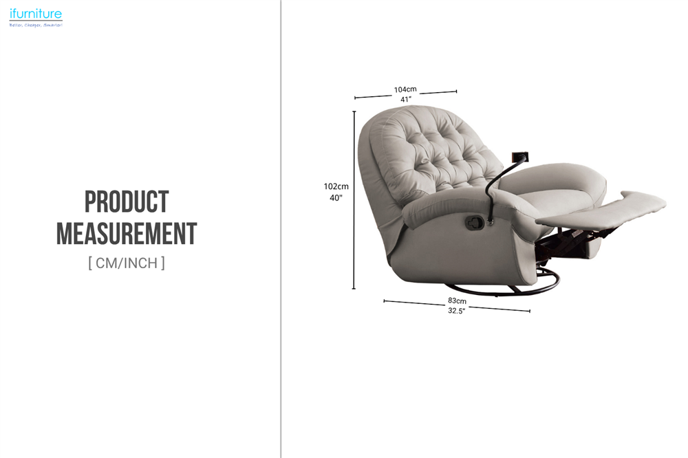 Relax in style and comfort with the SANO 360° Swivel Manual Recliner Lounge Chair. Upholstered in premium Air Leather, this chair features a luxurious Rebound Foam Inner for superior support and is built with a strong Metal Frame for added durability. Perfect for your living room or home office, this chair offers easy manual reclining with an integrated mobile holder for convenient device access while you unwind.