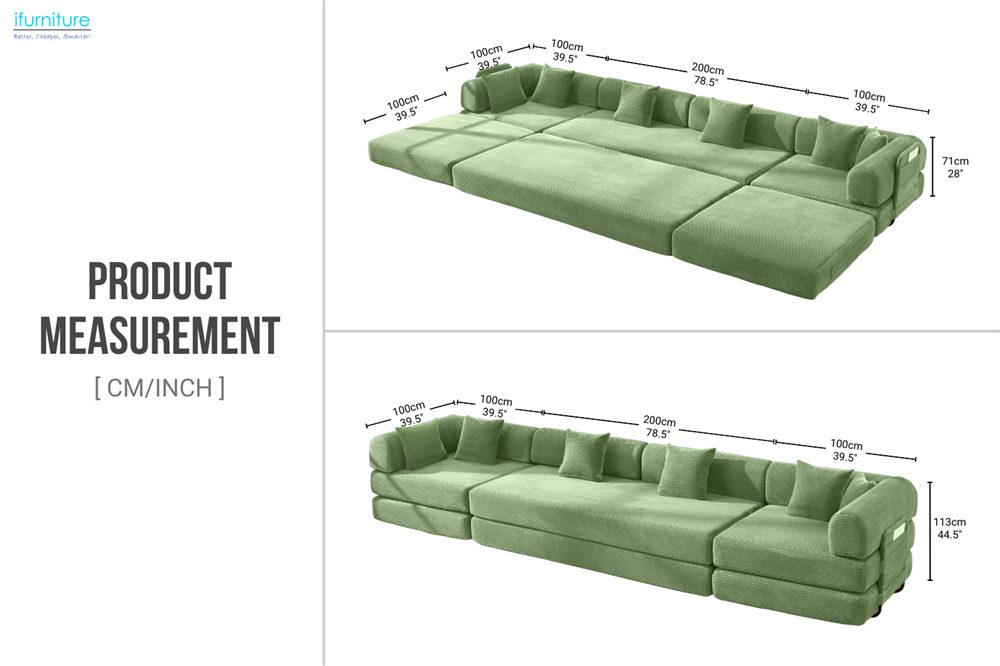 SINDARA Modular Compressed Sofa/Folding Sofa Bed Range (Green) - Sectional Sofa $1,079 Order Now
