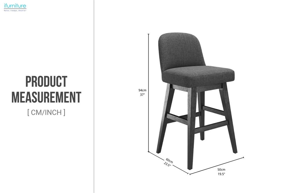 This bar chair offers a 360° swivel seat for flexible movement, stain-resistant fabric for easy cleaning, and sturdy solid wood legs for lasting support. Its minimalist design seamlessly fits into contemporary kitchens or casual dining spaces.
