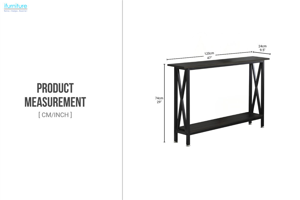 The console table features a dark engineered wood finish paired with minimalist metal details, delivering a perfect balance of style and stability. Its spacious tabletop is ideal for displaying décor, while the lower open shelf provides additional storage for baskets or books. With a slim silhouette, it fits beautifully in entryways, hallways, or behind sofas—adding both elegance and practicality to any space.