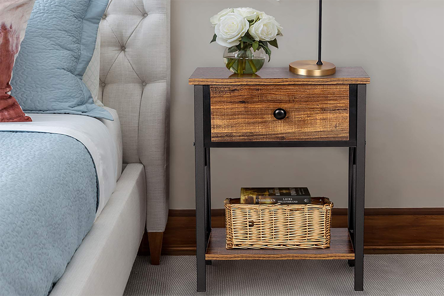 Decor your bedroom space with STEAM bedside table. The design of STEAM brings industrial age look to your living space. The combination of dark brown color and black frame blends well with most home decor. The crossed design on the sides brings a rustic look to your bedroom. Put your bedroom essentials inside the drawer or on the bottom shelf.