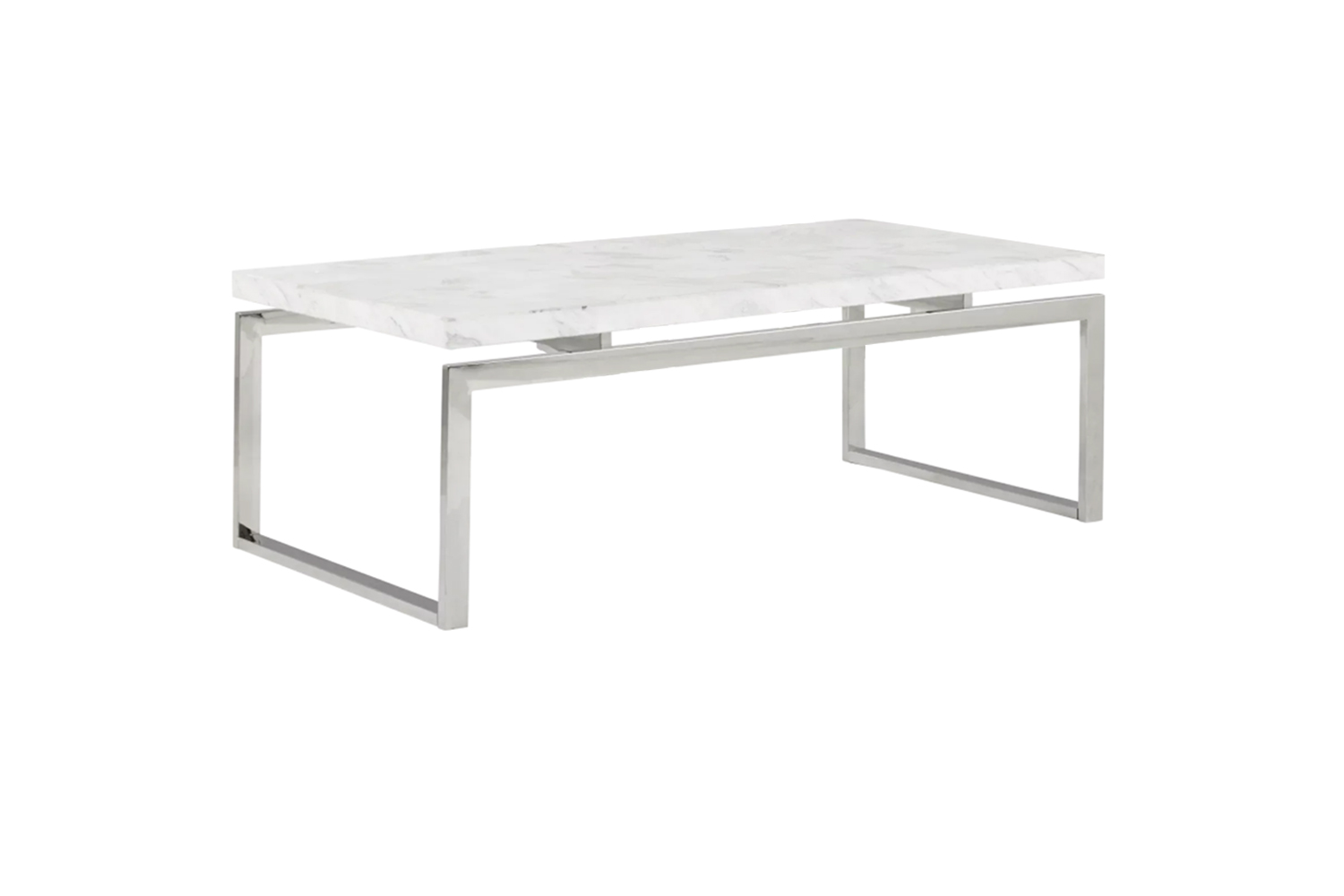 This coffee table features a real marble top with unique natural veining for a luxurious touch, paired with a sleek stainless steel frame for modern stability. Its minimalist design with clean lines makes it a timeless addition to any living room or lounge.