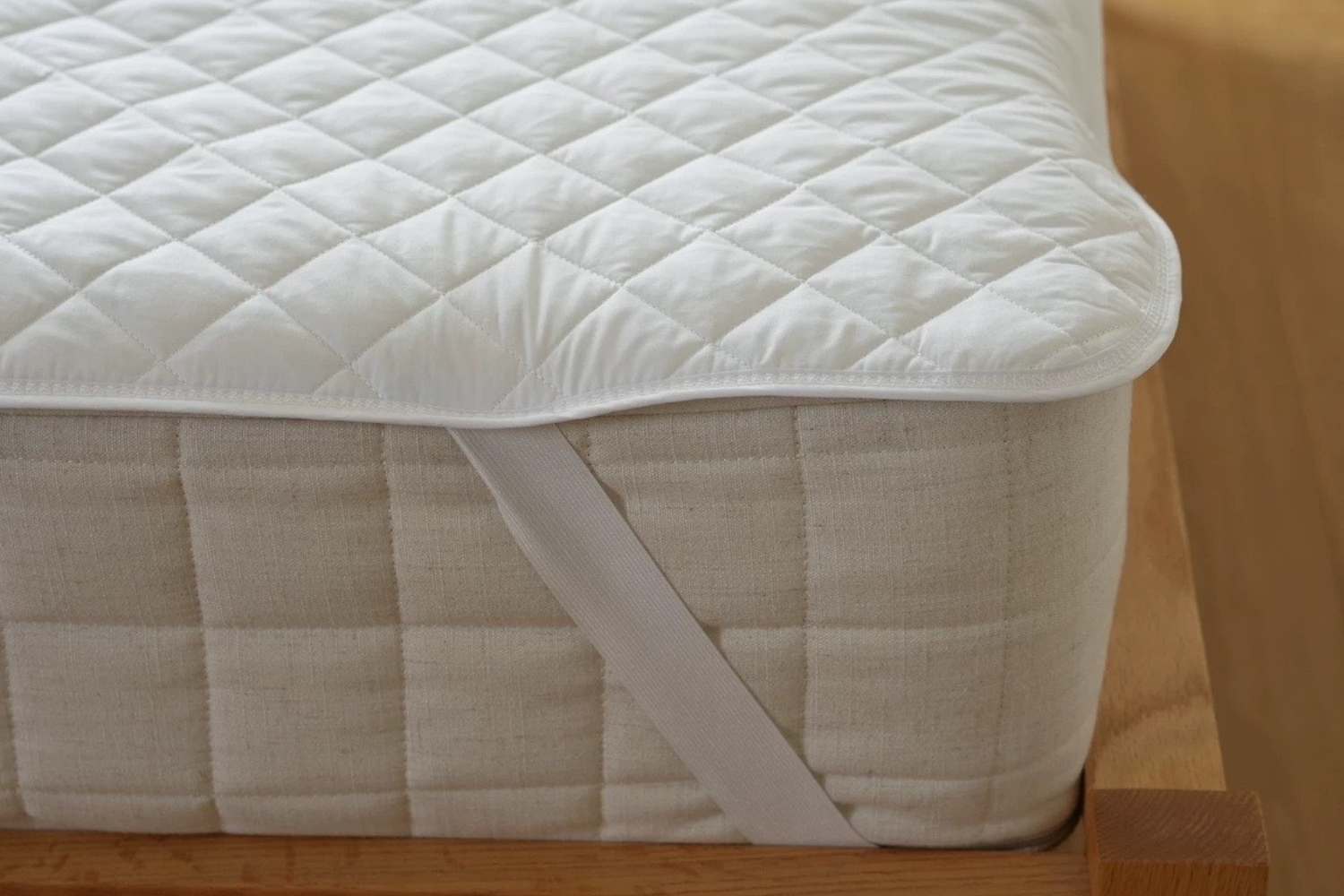 This flat mattress pad with polyester fiber fill and diamond quilt design offers comfort and breathability for cool sleep. Elastic anchor bands ensure a snug fit and protect against spills, stains, dust, dirt, and pet dander.