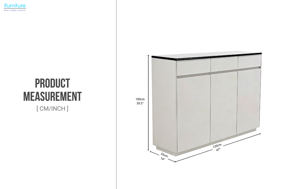 This shoe cabinet features a durable engineered stone top that resists scratches and stains. With three doors and three drawers, it offers generous storage for shoes, accessories, and essentials. Its sleek, minimalist design seamlessly complements modern interiors.