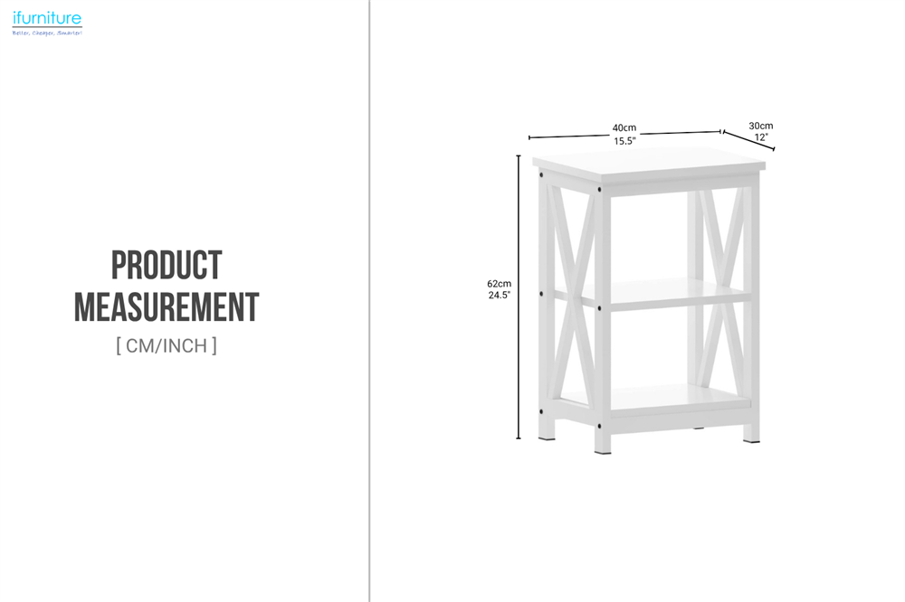 This 2-Shelf Side Table combines modern style with everyday practicality. Featuring a sleek X-frame design and a smooth flat top, it offers both visual appeal and durability. Two open lower shelves provide ample space for books, décor, or essentials, keeping your living area organized. Compact yet functional, it’s the perfect addition beside a sofa, bed, or in any small space.