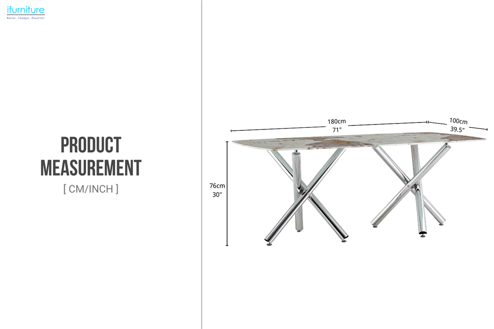 This elegant dining table features a durable, easy-to-clean tempered glass top and chromed X‑shaped crossed metal legs for style and stability. With soft, rounded edges and anti-slip foot mats, it combines modern design with functionality, making it a perfect fit for contemporary interiors.