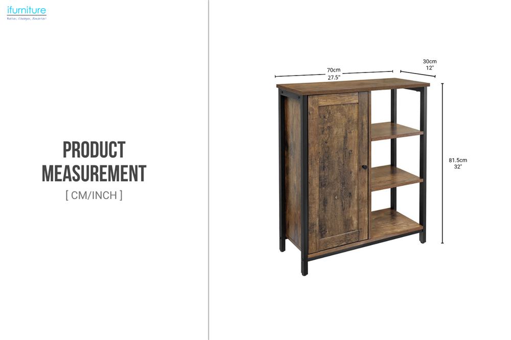 • Dual Storage: The left door cabinet conceals everyday clutter with a 3-tier interior; the right side features 3 open shelves for daily necessities, books, baskets, or décor.