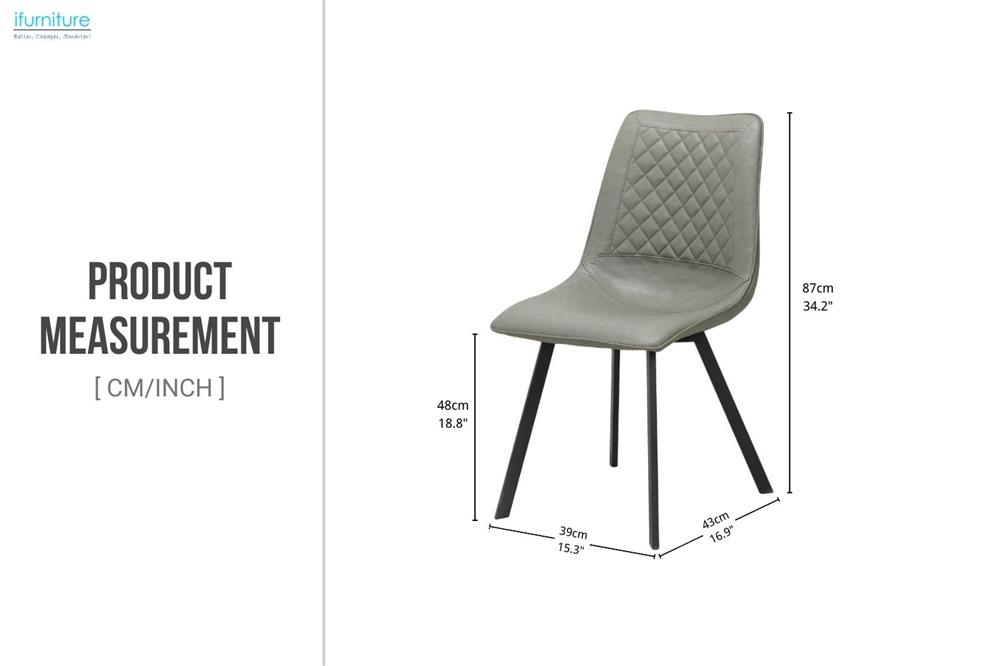 Dine in comfort and style with the WESTIN PU Leather Dining Chair. Upholstered in soft, durable Grey PU leather, it features plush foam padding for extended comfort. The sturdy metal legs with a sleek black finish add a touch of modern elegance. The ergonomic diamond-stitched backrest provides excellent support, while the easy-to-clean surface makes maintenance a breeze. Versatile for any space, this chair goes from dining room to office with ease.