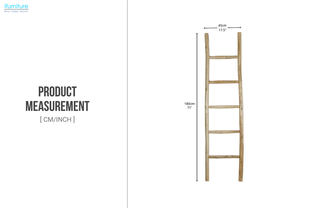 Crafted from solid teak wood with a warm natural grain, this towel ladder combines durability with timeless style. Its classic ladder design features multiple rungs for hanging towels or blankets, easy to move and lean against any wall. Versatile and decorative, it fits seamlessly in bathrooms, living rooms, or bedrooms as both a functional holder and a stylish accent piece.